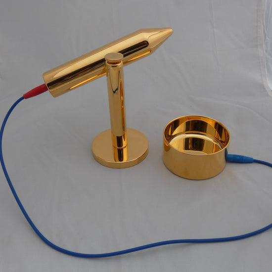 Dieser Orgonstrahler wird mit Ständer, Kabel und dem großem Becher geliefert und ist somit bereits so ausgestattet, dass eine Therapie durchgeführt werden könnte.