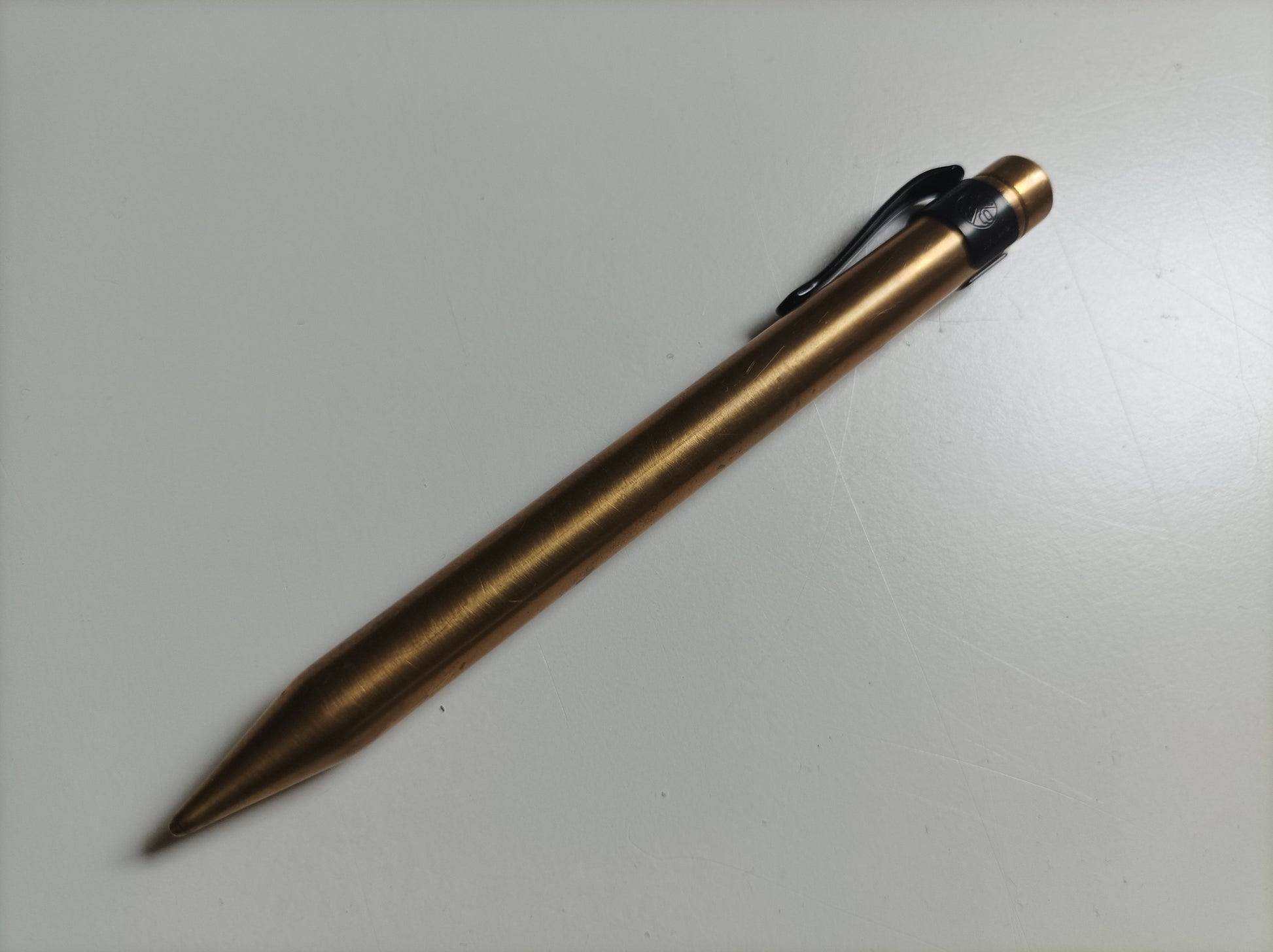 Außerdem ist ein Clip montiert, wie beim Kugelschreiber, damit er sicherer in der Westentasche transportiert werden kann.